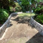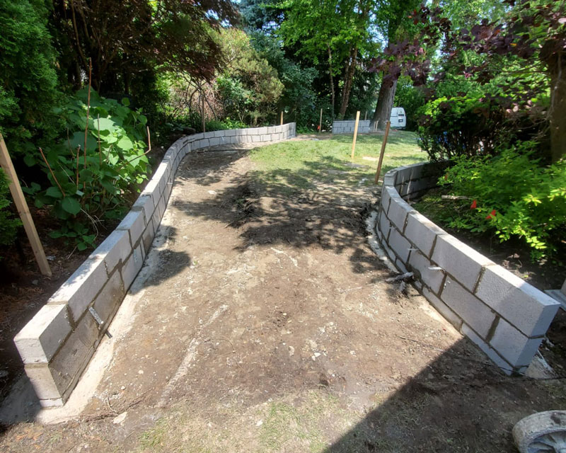 This retaining wall was built for a wedding reception space and will also serve as a new focal point at the front entrance of the house.